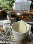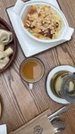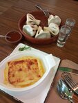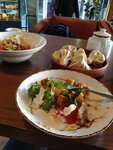 Заказали ачму, (а как иначе?), в двух вариантах, классическую и с грушей, обе вкусные. Та, что с грушей, ближе к десерту, о чем нас официантка честно и предупредила, рискнули и не пожалели, просто есть её лучше после основного блюда. Имбирный чай очень пряный, будьте готовы к остроте. За 2 ачмы и чайничек чая отдали чуть больше 2т. Заглянем ещё, рекомендую!