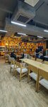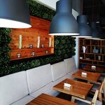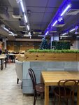 Интересный интерьер, неплохая еда. Обслуживание быстрое, ассортимент из 4 блюд каждого вида. Для бизнеса ланчей очень хороший вариант. В помещении чисто, столики не шатаются, мебель качественная, следят. Есть отдельные полукабинки, в зале зелень и дизайн.