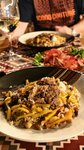 Жаль, что перед посещением не прочитала отзывы, действительно завышенные цены за среднее качество блюд. Были компанией двух девушек, съев по тарелке супа и манты, решили заказать мясо, несколько раз переспросили о размере порции, нас убедили, что на двоих нормально, но вынесли на огромном блюде ассорти шашлыка на пятерых. Не было радости от большого размера порции, а скорее ощущение, что над нами посмеялись. Персонал относится к гостям как коммерсанты, лишь бы оставили побольше денег, хотя могли бы дать совет по заказу, размеру порций и т.д. Баранина была с красной серединой, курица пересолена. Нам упаковали мясо с собой, но живя в отеле совсем неудобно иметь с собой две коробки мяса, негде греть и хранить. В общем, за свои же деньги мы получили казнь едой и испорченное настроение.