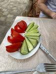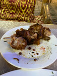 Заказали шашлыки: из говядины и баранины. Овощную тарелку, рис. Бык с бараном явно умерли от старости после непосильных трудов. Овощи принесли после того, как мы с трудом пополам справились с шашлыками. Петрушка была тоже явно в годах, и в ней свила гнездо какая-то живность. Рис был недоваренный. Единственное съедобное блюдо - лепешка. Еще и 15% взяли за обслуживание! 😡
