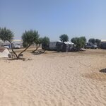 Начну с того, что пляж действительно потрясающий, с шелковым песком и прекрасным заходом в воду - практически до буёв чувствуется дно. Отличное место для детей. НО кемпинг, а нашей целью был именно он, сильно на любителя. Плюсы: есть туалеты, раковины, душ. Минусы - все это ужасно грязное. В раковинах остатки еды и чьи-то $опли, извините. Туалеты пару раз были забиты, и можно было лицезреть старания предыдущего посетителя. Второй большой минус - это то, что кемпинг никак не охраняется. Мы приехали туда ночью и не увидели ни одного человека из администрации, ни одного охранника. Кто угодно с улицы может зайти. Дальше, в вотсапе нам сказали, что размещают в любое время суток. Звонки на указанный телефон оставались без ответа, хотя звонили и вечером, заранее, и ночью, когда приехали. В итоге нам пришлось ночевать в машине рядом в лагерем. А утром, поговорив с обитателями, выяснили, что можно было просто заехать и поставить машину в любое свободное место. Ещё один большой минус - на территории кемпинга паркуются люди, которые приехали просто на пляж. Могут припарковаться и рядом с вашей палаткой, если вы уехали. И потом вы не поставите туда свою машину, пока они не уедут. В связи с постоянным прибытием/ отбытием машин посетителей пляжа, ваша палатка уже через сутки будет покрыта толстенным слоем пыли. И стол, и вещи, висящие на бельевой веревке. Организация пространства просто ужасная, админам явно пофиг на жильцов, им главное срубить денег за платную парковку. Ну и вишенка на торте - развлекательная программа в ресторане на пляже до 12 ночи. Громкость такая, что стены в туалете вибрируют. Тусовщикам зайдет. Семьям с детьми и просто тем, кто привык ложиться раньше - не зайдет. Места бронировать заранее нельзя. В августе тут битком, особенно на выходных. В общем, если вы дочитали до конца. Это место очень не советую. Есть кемпинги с гораздо более продуманной организацией, где хозяева относятся с бОльшим уважением к комфорту посетителей.
