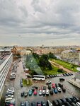 С виду не особо привлекательный, не производящий вау-впечатление отель, но внутри мое мнение кардинально поменялось) Все очень современно, обслуживание супер, отель огромный! На первом этаже ресторан, где мы питались по системе «шведский стол». Завтраки, обеды и ужины шикарные, выбор блюд достаточный, никто голодный не остался, еда потрясающе вкусная как дома🥰 много фруктов, на завтраке можно даже отменного лосося слабой соли испробовать) Персонал что в ресторане, что на этажах крайне вежлив (культурная столица как-никак). Нам достался угловой номер на 10 этаже с потрясающим видом на Питер - засыпать и просыпаться с таким зрелищем - сказка🔥 Номера шикарные, кондиционер, кофемашина, все самое необходимое в наличии, можно путешествовать налегке. Расположение отеля на Фонтанке недалеко от Балтийского вокзала и метро - 10-15 минут пешком по прямой. Перед отелем сквер с фонтанами, цветущими розами и лавками, где можно подождать заселения. Однозначно рекомендую этот супер отель!