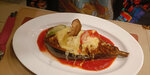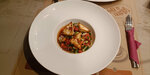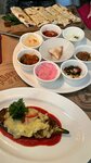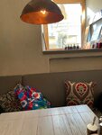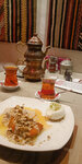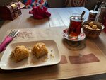 Зашли в сб вечером после погулки, народу было много, но местечко нашли. Честно говоря, я думала, что не буду есть, просто попью чаю, взяла только салат с сыром, который был очень вкусный. А потом попробовала баклажан у мужа и поняла, что он ну очень вкусный, даже хотела ещё заказать, еле сдержалась. На десерт взяли тыкву, лимонный пай и пахлаву с мороженым. Мне кажется, что надо было брать только пахлаву, а то получилось очень много. Всё вкусно, но тыкву я не смогла доесть, так как уже переела. Пахлава - огонь, конечно! 🔥 Всё такое сладкое, что лучше всего запивать несладким чаем. Что мы и сделали. 🍵 Ещё лимонады брали грушевый и персиковый, тоже вкусно. Персонал очень дружелюбный, могут посоветовать по меню, если надо.