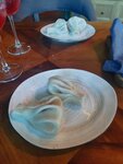 Были в заведение 08.05.25. Интерьер очень красивый, восточный мотив читается в каждой детали, много зелени, яркие акценты. Посадочных мест много, приятная музыка. Приятно было находится здесь. Если брать всю концепцию заведения, цены, быстроту отдачи блюд и гостеприимство, то 5 заслуженная. В заказе на 3 было : ✔Тартар из лосося на рисовых чипсах 390р.(1фото) :цена приятная, чипса похрустывает, как мне показалось нежный васаби соус дополняет эту картину своей пикантностью. Сам тартар слабоват, яблоко сильно заглушает вкус рыбы. Всё вместе достаточно не плохо. ✔Вителло тоннато 490 р.(2фото) - я фанат этого блюда и заказываю везде где нахожу. Соуса много, яркий вкус тунца мне понравился, но вот мясо будто переварили, жестковато и без вкуса совсем. ✔Цезарь с курицей 390р.(3 фото) - вкусный салат, мяса достаточно, сыра много добавили, яркий. ✔Том Ям со стеклянной лапшой 390р.(4 фото) - острота 2 из 5, больше кисловат, чем островат. Бульон бы хотелось по ярче, наваристее. По составу не плохо за такую стоимость. ✔Шашлык из цыпленка 390р(5фото) - вкус костра присутствует, нежное и сочное мясо(мнения разошлись, мне было хорошо, ребенку сыровато), которое дополняет капуста, морковь по-корейски и маринованный лук. Подается на лаваше. ✔Мидии по соусом "Том Ям" 490р(6 фото) - мидии мясистые, сверху начинка показалась с лишней кислинкой (видимо у них такая паста том ям, ибо в супе та же кислинка присутствовала). Из напитков брали Айс Ти смородина(освежает, но вкус слабоват) и ягодный морс хорош был. Огромное спасибо коллективу заведения, приветливые, даже поздравили с годовщиной свадьбы и подарили коробочку с рахат лукумом(уточняли при бронировании повод). Вся атмосфера заведения, да и где найдешь такие цены низкие, покрывают и сглаживают эти недочеты в блюдах.