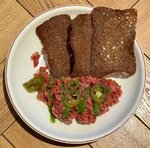 Отличный ресторан! Всё вкусно, хорошее обслуживание, подача быстрая, очерёдность соблюдают - 👌 Заказывал: - Тартар из говяжей вырезки (вкусно, хорошо замаринован). - Северные креветки с острым соусом (прекрасно приготовлены, да ещё и порция такая добрая - супер!) - Стейк Рибай (очень мясной вкус - прям порадовал!)