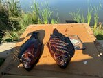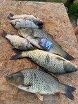 Был в самые жаркие дни, приехал в 5.00, прикормил две точки, по 5 кормушек 35 гр, закинул в 7.00 пару фидеров. Сразу начал клевать линь на пучок червя и опарыша.. Решил перейти на кукурузу, и пошла жара. Клев карпа в перемешку с линем, карасем. Пара-тройка под 3 кг, самый мелкий был 1,5 кг. К 11.00 подтянулись отдыхающие, плотно заняли весь противоположеный берег, было довольно шумно, но на клеве это не сказалось. В 15.00 начал сворачиваться, итог 21кг карпа и 6 кг линя. 2 обрыва на паровозах и 3 раза нырял за фидерами, не успевал подхватить после рывка, карп бойкий, получил удовольствие от рыбалки.