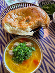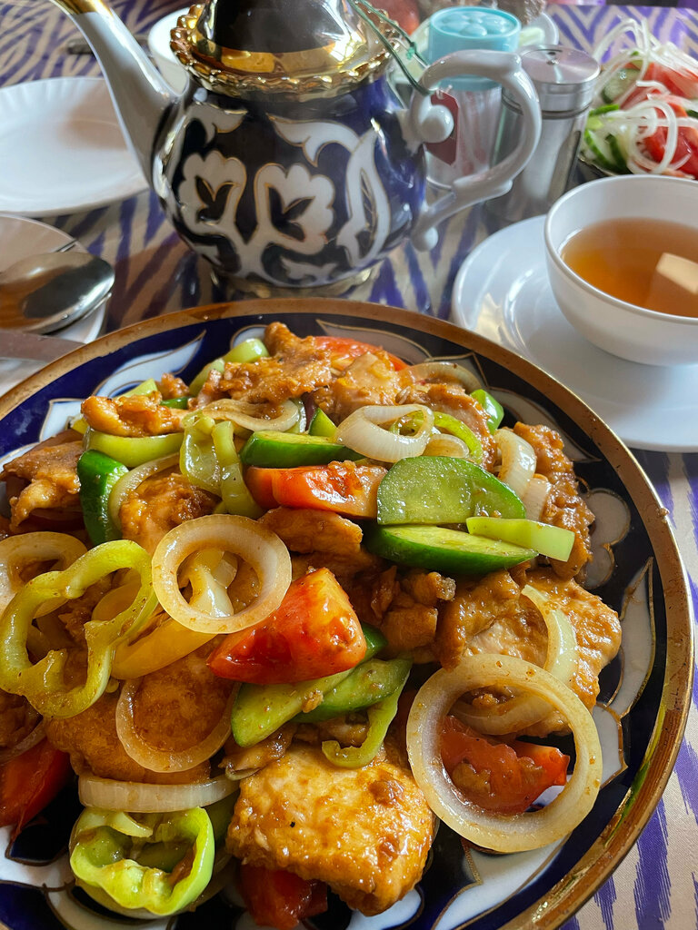 В четвертый раз в Бухаре за последние 2 года. Сейчас январь 2025. Когда гуляем в районе Арка, иногда заходим в эту чайхону пообедать или поужинать. Попали и узнали об этой чайхоне - случайно, гуляя. Что тянет в эту чайхону? Всегда вкусный шашлык. Порции достойные. Ели и куриный, говядина, баранина, рубленый люля. Мясо всегда свежее, мягкое, хорошая порция маринового лука всегда подается. Да, один раз принесли костявый говяжий шашлык, есть было невозможно. Но сказав начальнику об этом, ситуацию исправили. Действительно, официанты ленивые и обслуживания как такового нет, любители делать вид что не понимают русский язык (когда им это удобно), любители за обслуживание взять больше и округлить сумму, хотя в меню указано 5%. Задаешь вопрос на эту тему - всегда сто ответов. И всегда из меню в наличии 30% блюд из списка. Вкусные супы, салаты, лагман, но плов дважды приносили перепаренный, переваренный, мало моркови и мяса, нет национальных специй. Не всегда чисто в этой чайхоне.