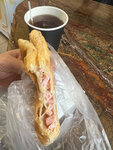 Заехал в пекарню, покушать! Купил чай и слойку ветчина и сыр. Мне всё понравилось, рекомендую к посещению . Чай 40. Слойка 130.