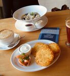 Купила экскурсию на лаваходе. Группу делят по 11 человек, часть совершает морскую прогулку, остальные ждут на берегу. Гид предлагает посидеть это время в кафе. Конечно, все заказывают что-то. Вот и я взяла меню, выбрала блюда и долго ждала официантку. Наконец, на меня обратили внимание и приняли заказ. Я решила попробовать не так уж много, да и не трудоёмкие блюда: двулепные вареники ручной работы, десерт и облепиховый чай. Ждать опять пришлось долго. Я уже даже спросила официантку, не забыли ли они обо мне. Уже подходило время, как надо было идти на морскую прогулку. Пришлось проглатывать, как можно скорее, а не наслаждаться атмосферой, едой и природой. К слову, еда была неплохая, не отлично, но нормально. В тот день у меня был день рождения, и я спросила официантку, есть ли какие-то бонусы для именинников. Конечно же получила отрицательный ответ. Не удивилась. В целом не хочу сильно критиковать это кафе, там чисто, красиво, готовят сносно, но до московских заведений подобного формата им ещё работать и работать. Впрочем, возможно, они будут работать по принципу: и так придут, ведь лаваходы отправляются с этого места. Поживём - увидим.