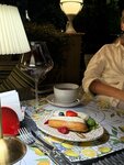 Выбрала это место для завтрака, потому что есть небольшая веранда, часть столиков которой с утра были в тени. Пришлось достаточно долго ждать выноса меню (сотрудники не часто выходят на улицу), сам завтрак приготовили быстро, он был вкусным, порция большая.