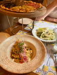 Хороший ресторан итальянской кухни. Качество продуктов отличное, еда достойная, интерьер приятный. Но есть пара моментов на улучшение: меню пасты почти полностью состоит из «мясных» или сливочных вариантов, а учитывая специфику заведения хотелось бы увидеть и другие варианты: качо э пепе, аррибьята и т.п. Ну и обслуживание было не очень. Учитывая качество еды и разумные цены все-таки 5*