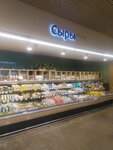 В принципе, супермаркет неплохой, но есть несколько Но! В акционные дни часто нарываешься на прокисшие продукты в кулинарии. Не раз уже обжигались на кислых салатах! Гренадер весь в слизи. Крабовый забродивший. Салаты из свежих овощей вообще страшно выглядят. Причём, на вопрос Свежее ли, в ответ - конечно, только вынесли на прилавок! В общем, будьте бдительны. Трижды писала в поддержку, в ответ- мы сожалеем!