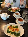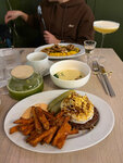 Все меню очень вкусное, что десерты, что горячее, что напитки. Отдельное спасибо за матча латте, 10/10 Интерьер красивый, сервис хороший, место приятное, официант с усами 👍🏻 Подставки с таксами для приборов очень милые
