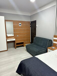 Отличное место, нам все очень понравилось! Номер с новой мебелью, все чисто. В номере полотенца, постельное белье, фен, сейф, средства для мытья, утюг и гладильная доска. Также есть общая кухня на 3 комнаты, очень удобно. Есть бассейн, вода чистая. Территория гостевого дома класс - есть беседка, детская комната, качели, зона отдыха на крыше. Персонал очень вежливый. До моря пешком минут 7, по пути есть столовая. Возле моря набережная- очень удобно гулять с коляской, море чистое. Мы остались довольны!
