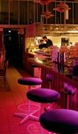 вообще разочарование.... такого розового антуража нет, интерьер видавший виды, кучу сколов и вмятин видно... меню дорогое, по вкусу так себе... официанты какие-то с претензией, непонятно с чего. на входе микро гардероб... в общем, никогда больше...