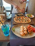 Были в отпуске из Москвы . Жили на комендантском . Шли мимо, искали где поесть, ресторан увидели случайно, заглянули, и остались в восторге. Все очень вкусно, разнообразное меню, замечательные цены, очень быстрая подача блюд, приятная официантка Мария. Пробовали различные роллы, особенно вкусно запечённая Филадельфия, треска под сыром, ассорти из шашлыков, хачапури по-аджарски, салат из баклажанов, все было великолепно. Очень неплохие коктейли, особенно мне понравилось пина-колада, мужчины пили пиво. Столик в ресторане желательно бронировать, но и без бронирования нам выделили столик. Очень приятные администраторы. Когда отпуск закончился, посетили ресторан ещё раз, всем рекомендую .