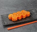 Хрустящая корочка нори, нежный рис и сочное филе снежного краба в сочетании с освежающими огурцами. Запечённый ролл «Калифорния» дополнен пикантным спайси-соусом и сладковатым унаги, посыпкой из кунжута и масаго. Блюдо сочетает в себе лёгкость и насы