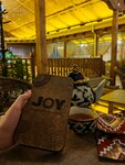Добрый день. Итак, были в Joy не так давно, посмотрели отзывы и решили, что нам сюда. Очень удобная локация - прямо в центре Бухары у Ляби Хавруза, просторно помещение (два этажа с узенькими аутентичными лестницами), чисто и красиво. Меню без каких то гастрономических изысков, но думаю каждый найдёт себе блюдо по душе. Цены тоже достаточно демократичные, по сравнению с окружающими заведениями (нет 18% к счету как в заведениях неподалёку). Но, не все так прекрасно. Заказал первое и второе блюдо. Первое принесли достаточно быстро, курмный суп с лапшой - испортить его достаточно сложно, его и не испортили. А вот со вторым оказалось все гораздо сложнее. Ждал блюдо полтора часа, при этом официант сразу предупредил что ждать придётся, но обозначил 20-30 минут. Несколько раз напоминали, что ждём второе и салат, ответ был "Блюда очень сложные и ещё готовятся". В итоге салат коллеге принесли через час, второе я не дождался и просто рассчитался и ушёл. Да, официант очень извинялся, но на вопрос *Почему нельзя было просто предупредить о большой нагрузке на кухне? ", ничего не смог ответить. Добавлю, нагрузки в кафе не было, половина столов пустые. Так что просто хотел бы дать совет заведению - берегите и цените не только свое время, но и гостей