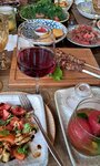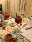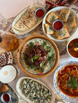 Прекрасное заведение, очень вкусная еда и сервис с местной кухней. В первый раз не могу выделить какое-то блюдо, все что мы заказали-все было безупречно и очень вкусно. Брали шашлык из баранины-мягчяйшее мясо, вкусный маринад, подача с овощами на гриле и соусе из томатов. Официант посоветовал попробовать из закусок - чакку, это тоже для нас стало очень приятным открытием в мире новых вкусов, густой Айран, как творожный сыр, только более воздушный и с кислинкой. Отличная долма, ханум, очень вкусное мясо и разнообразие вкусов. Также попробовали местную пахлаву, много орехов, по-моему большой изюм и воздушная пропитка из какого-то белого крема, хорошее сочетание, такого нигде не пробовали.