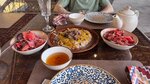 Место в которое сложно попасть и которое рекомендуют и гиды и администраторы гостинец. В плюсах неплохое обслуживание (когда нет организованных групп и живая музыка). Кухня - не слишком плохо, но и не хорошо. Салат не сбалансирован, в горячем мясо распадается на волокна, но для этого достаточно тушить несколько часов, чай с имбирём почему-то похож на смузи из имбиря. Вообще как ни удивительно в Узбекистане нет культуры чая, можно прийти в дорогое место и получить чай из двух пакетиков ультра бюджетного.