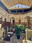 Это место мне посоветовали местные как лучший ресторан в городе. Полностью согласна, такого сервиса я не видела даже в ресторанах Европы! Очень приветливый, искренний и доброжелательный официант с идеальным английским Шерали просто очаровал! Желаю ему больших успехов! В меню много национальных блюд, некоторые из них видела впервые, хотя была уже во многих ресторанах Узбекистана. Удивило, что кофе в 3 раза дешевле, чем в ресторанах Хивы, откуда я приехала. Там ещё и 10-20% включают в счёт за обслуживание, здесь 0%! Вкусная пахлава, очень насыщенная, в других ресторанах всегда была суховата. Приятная атмосфера, играет прекрасная живая музыка! Однозначно рекомендую!