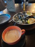 Понравилось. Качественное и вкусное капучино. Заказ приносят быстро,минут 10(была на буднях). Очень располагающий интерьер. В моё посещение сервировали столики к ужину, очень красивая и "атмосфера" посуда , сразу чувствуется особое отношение к клиентам. Заказывала сковородку с мидиями в сыром соусе-очень вкусно, порция достаточно большая, думаю и крупный мужчина наестся)))). В следующий визит обязательно попробую мидии в винном соусе, кстати ,там 4 вида подачи сковородок мидий. Туалетные комнаты (именно комнаты, а не узлы)и аксессуары в них на 5++