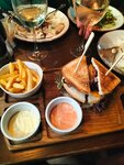 Мое любимое место, жаль что кухня немного испортилась, В дополнение : официант не уточняет степень прожарки медальона из говядины. ( касается официанта девушки с кукольным лицом, от нее очееееень сильно пахнет табаком) На столе очень долго стоит грязная посуда. ощущение что я в столовой 🤷‍♀️ Мидии раньше были с чесночком ( я беру со шпинатом) крайние два раза они были с мелким шпинатом и от прежнего вкуса ничего не осталось . Багет который подают к мидиям тоже максимально испортился ( он больше не такой хрустящий и вкусный) Сковородка со свининой тоже максимально пресная, раньше ее хотя бы жарили с мясом немного и чесночком( запах стоял на весь зал, в крайний раз все просто кинули в сковородку немного подогрели и подали) Кстати также официант налила нам пиво в грязный бокал) но хвалю из чека это убрали Не принимайте все в критику , я правда люблю это заведение, и там есть много плюсов, но кухня начала хромать. Вкус блюд очень сильно изменился Кстати у меня есть любимые официанты в вашем заведении, всегда стараюсь оставить чаевые) Из любимых блюд мидии ( шпинат или сыр с плесенью) Брускетты отдельная любовь❤️ Бургер меня поразил( очень вкусно , но прожарку опять не уточнили) Перечислять можно долго )