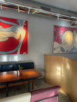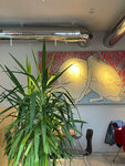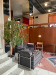 Молодежная кафешка, в минималистичном стиле, с местами для работы на ноуте, с интересными картинами на стенах, меню не большое, но есть первые, вторые блюда, закуски, немного десертов. Места много, светло, просторно, куриный бульон по вкусу похож на какой-то азиатский супчик, паста с креветками обычная, кофе хороший