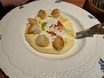 Отмечали день рождения мужа, в тихом семейном кругу. Очень красивый интерьер, живые цветы - это просто что-то восхитительное, атмосфера просто потрясающая. У нас была официантом Виктория, очень милая и приятная девушка. Рассказала о всех блюдах и помогла определиться с напитками. Единственное, что хотелось бы пожелать Виктории, чтобы при рассказе о десертах, их нужно описывать так, чтобы хотелось съесть из прямо из меню. А в остальном все просто супер! Обслуживание на высоте. Салат с хрустящими баклажанами просто топ, запеченный язык ням-ням, ну а гребешки выше всяких похвал. Ну конечно же тортик со свечкой! Виктория, спасибо за Ваши поздравления и пожелания! Кстати, приятный бонус 15% скидка в День рождения. Будем заходить сюда чаще, благо живем на соседней улице.