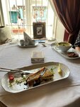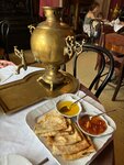 Из плюсов: очень красивое место, антуражное, официантки приветливые, в красивой форме(костюме) Из того, что немного расстроило: завтраков после 12 нет, из-за этого небольшое меню становится еще меньше, некоторые позиции также закончились. Заказывали самовар, пельмени, судака, паштет - порции не большие, но вкусные и красивые, самовар выносили очень долго, уже только после того, как все блюда были съедены, хотя мы просили, принести все по готовности в том числе и чай, не получилось подольше почаёвничать - опаздывали на экскурсию В общем впечатление хорошее, все было вкусно!