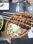 Официанты плохо говорят по-русски так же, как и относятся к русским в заведении в целом. Заказали шашлык, салат и лепешку. К салату претензий нет, вкусно, лепешку принесли маленькую, в то время как местным принесли лепешку большую, может надо что-то говорить при заказе, но меня все равно не поняли бы. Шашлык мясной вкусный, но если обратить внимание на фото, каждый третий кусок сверху - чистое сало. Молотому шашлыку поставил бы 5, если бы не длинный черный волос во весь шампур!! Попросил вычесть его из счёта, а когда официантка принесла новый, с недовольной миной на лице молча понесла обратно на кухню. Не рекомендую данное заведение, если вы приехали сюда почувствовать на себе местное гостеприимство.