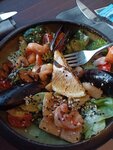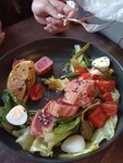 Пришли с подругами, 5 человек. Пятничный вечер. Сидели на веранде, ждали заказ полтора часа. Блюда выносили по одному, напитки через полчаса после салатов. Обещали воду, но так и не принесли. Девушка не записывала наши блюда, поэтому пару раз забывала о них. Когда мы сказали, что уходим, потому что ждём уже очень долго, нам принесли комплимент- шоколадный торт, вкусный . Люди за соседними столиками ушли, так и не дождавшись своих заказов. Коктейль Клубничный физ оказался слишком сладкий и безалкогольный. Понравился салат с морепродуктами. В общем, мы были разочарованы, потому что очень редко удается встретиться и вместо того, чтобы расслабиться,нам пришлось решать простые вопросы, которых не должно было быть.
