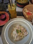 UPD. Отзыв поменян, добавила 2 звезды (за всю ситуацию ниже, мне предложили сертификат на 3000₽, что вполне покрыло бы наши расходы. Я отказалась, так как есть все равно здесь не хочу, но за неравнодушное руководство, которое старается исправить ситуацию накидываю 2 звезды) Начнем сразу с минусов, потому что плюсов нет: 1. Веранда собрана из того что валялось в гараже, провалилась на стуле между досок. 2. Попросили включить вентиляторы, невероятно душно. Через 10 минут спрашиваю еще раз, мне отвечают «что включить?» 3. Апероль просто прозрачный, там нет ни алкоголя, ни сиропа, ни-че-го. 4. Сначала принесли основное блюдо парню, потом мы 10 минут ждали когда вынесут мне хотя бы закуску (если что в заведении всего 3 стола занято, сделать одновременную подачу блюд вроде не сложно) 5. Блюда: карбонара просто средняя, кальмар с печенным перцем ужасен (кальмар толстый, резиновый и ощущение что сырой, перец уж более мене и все это полито тонной самого дешевого соуса с чесноком), судак с пюре из брокколи (рыба ощущение что варенная просто, ни лимона, ни специй, ни корочки зажаристой. Пюре безвкусное, жидкое. 6. Мы не съели НИ ОДНОГО блюда, расплатились сразу, как только вынесли последнее и ушли. Кто-то из сотрудников спросил хоть что-то?))) Всем было все равно.