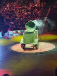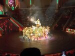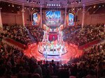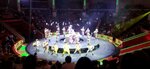 Начну с буфета: бутерброд с колбасой 300 р., виски 0.05 1100 руб., ведро попкорна 1000 руб. Игрушки и сувениры : светящаяся китайская пластмасска 650 руб. В зале деревянные откидные кресла. Сидела на 1 ряду 25 место, все артисты стояли ко мне преимущественно спиной. Спектакль музыка победы, под мелодии и песни военных лет. Очень чувственно и трогательно. Понравилось все, правда, иногда жонглеры роняли снаряды, но это мелочи. Дрессировщики, эквилибристы, атлеты, клоуны - всё прекрасно. Публика... Это отдельная тема. Мусульмане мужчины снимали обувь и сверкали черными подошвами "белых" носков, а их дети (как мальчики так и девочки) ставили ноги в ботинках на спинки кресел нижерасположенных рядов. Телефоны, еда, разговоры...
