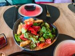 Поварам двойка: 1. Кукси - лапша долго пролежавшая в холодильнике, кукси мури не вкусный, неужели так сложно посмотреть в YouTube рецепт хорошего кукси-мури Вода - 3 литра. Сахар - 7 ст.ложек. Соль крупная - 1,5 ст.ложки. Уксусная кислота 70% - 1 ст.ложка. Соевый соус - 3 ст.ложки. Помидоры - 2 шт. Огурец - 1 шт. Укроп - 30 гр. 2. Салат с тофу без тофу. 3. Chicken не прожаренный внутри Не обижайтесь, Ваш так называемый ресторан не тянет и на тройку