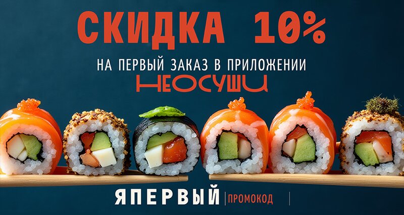 Скидка 10% на 1-ый заказ в приложении Neosushi по промокоду "ЯПЕРВЫЙ"