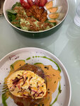 А меня не впечатлило совсем) интерьер красивый, но было неуютно, но это сугубо личное мнение. Взяла цезарь боул, от цезаря одно название, заправка из авокадо вообще. Десерт с макадамией не впечатлил, впечатлила его цена! Картошка фри была обычная, не лучше чем в фастфуде. На троих отдали 7500, каждый съел по салату, десерту и напитку. По цене сегмент выше среднего, по вкусу просто нормально, скорее разочарование от ожидания. Маленький выбор пирожных и выпечки, в инстаграме все намного лучше выглядит) Из плюса: на каждом столике бесплатно большой график воды с мятой. В целом не рекомендую, без труда можно найти места лучше. Считаю, что ценник не соответствует вкусу, так как это «кафе», а не ресторан