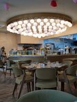 Просторное помещение в спокойной цветовой гамме конечно радует глаз. Особое внимание уделяют предметам интерьера и красивым акцентам декора на столе. Всегда подают бутылку воды, что несомненно плюс заведению. Персонал приветливый, все расскажет и покажет как говориться ) зашли уже сытые, поэтому заказывали только матчу и десерты. Все очень понравилось