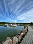 Очень живописное место. База прямо на берегу залива. Ресторан с видом на закат. Хорошие завтраки. Можно жить в отеле, в домике в лесу или домике с видом на залив. Пускают с собаками. Есть площадки для детей. В пешей доступности норвежский верёвочный парк в сосновом лесу. На машине или велосипеде можно доехать до бухты Жёлтая - известный природный заказник.