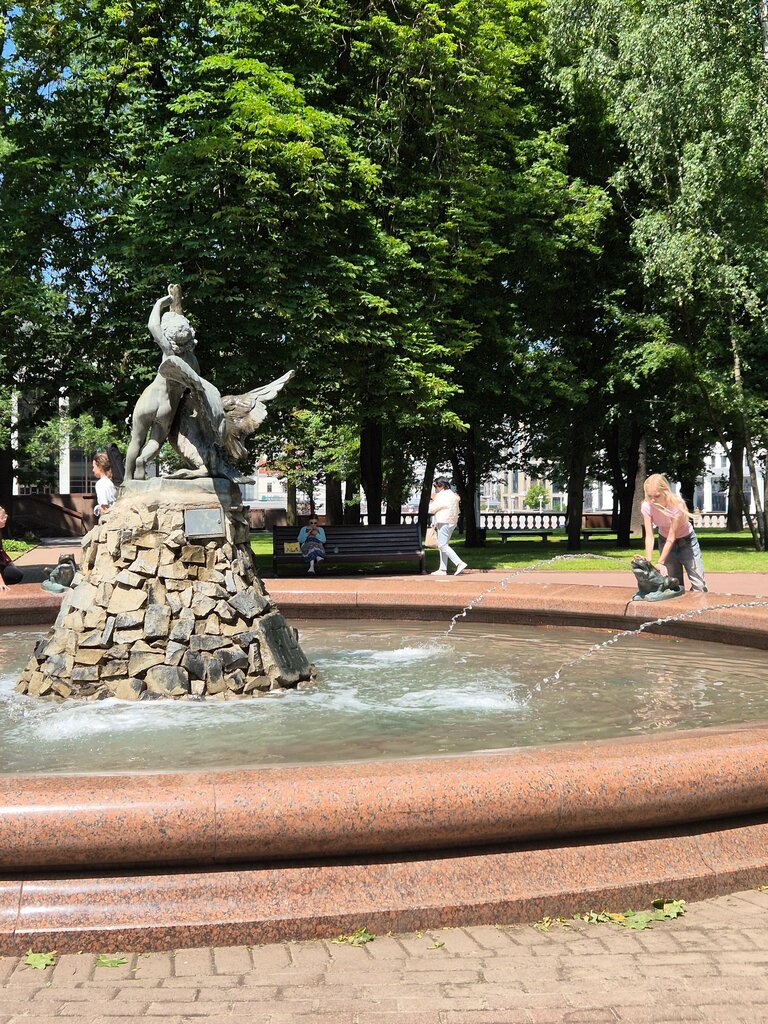 Небольшой, зеленый, ухоженный сквер с фонтаном. Очень много лавочек и все под кронами деревьев. Летом отлично прям. Еще в летнее время, по субботам проходят бесплатные мероприятия. Мне повезло и побывал на концерте государственного ансамбля "Песняры".Восторг💯👍