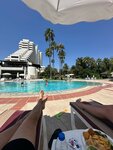 Были в этом отеле с 03.07.2025 по 10.07.2025. Были вместе с женой. Приехали в отель в 10-00. Нас сразу заселили. Отель не совсем новый, но все было чисто и уютно. Территория вся зеленая. Номер дали 325 на 3 этаже с боковым видом на море и пляж и с видом на территорию и парк отеля. Номера чистые, белье меняли за 7 дней 1 раз. Минибар пополняли каждый день. Возле бассейна всегда свободные лежаки. На пляже отеля всегда тоже свободные лежаки и зонты. Занято было только одна треть. Не нужно бежать с утра занимать. Каждый час до пляжа от отеля ходит автобус, пешком недолго идти, минут 10 через красивый парк по набережной. На пляж спуск на общественном лифте, к нему дорожка идет от отеля. Сам отель находится выше пляжа метров на 30-40. На завтраки, обед и ужин никогда не было очередей, всегда были свободные столики. Много кошек на улице, которые всегда поесть выпрашивают. Официанты их пытаются разгонять бутылкой с водой, брызгают, но те шустрее официантов, бесполезно!))) Меню разнообразное, голодными точно никто не останется. Правда фруктов можно было бы и побольше. В основном всегда были арбузы, дыни, сливы, апельсины, абрикосы, яблоки и иногда персики. Вино белое и красное местное, неплохое. Крепкие напитки не пробовали. Расположение отеля очень хорошее. В центре. Кому на шоппинг, то точно сюда. Недалеко крупные моллы как 5м Мигрос и Дарк Анталья. Доезжали до них за 150 лир (300 рублей), это минимальный тариф на такси в Анталье. До Антальи молл доезжали минут за 25-30 за 650 (1300 рублей) лир. Но там все те же бренды как и Дарк Анталье и 5м Мигросе. Рядом аптек много. Самый выгодный обменник на площади возле башни с часами, где старый город начинается. Второй от первого обменника, метрах в 50 дальше, курс на 20-30 лир выгоднее. Так же недалеко от отеля Океанариум находится. Пешком минут 10. С детьми в этот отель особо не стоит ехать. Анимации практически нет. Детям скучно будет. Тихий спокойный отель. По вечерам только с 21-00 до 23-00 из соседнего Риксоса всегда музыка гремела. На ресепшене тоже всегда быстро на просьбы реагировали, есть русскоговорящие. Поэтому в этот отель стоит ехать, несмотря на небольшие недостатки. Но если их не искать, то отдых всегда и везде будет отличный!