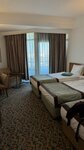 Отдыхаем с 15.06.25 и хочу сказать что отель превосходный! Прочитав некоторые негативные отзывы могу смело заявить что они не оправданы. Отель предоставляет сервис и питание и удобства намного выше той цены, по которой отдыхают в нем люди. Начнем сначала, для удобства есть три больших современных и быстрых лифта с зеркалами, далее номер, вид со всех сторон здания захватывает дух, номера чистые, мебель очень добротная, постельное белье качественное и кровати очень удобные, шторы блэкаут, чайник и все необходимое в номере есть. Уборка тщательная и быстрая. Отдельно хочу сказать о питании, роскошные ! Завтраки с натуральным йогуртом, богатый выбор на любой вкус блюд, обед и ужин всегда несколько блюд со свежими продуктами, много салатов хумус аджика разные соусы, гриль а фрукты ! Это отдельная любовь так как арбузы дыни абрикосы все спелые а не деревянные как в других отелях видимо руководство отеля очень следит за питанием гостей. Мороженое алкоголь , вино местное но вкусное и после него не болит голова. Большой плюс персонал говорит на русском языке. Территория большая разнообразные зоны отдыха и много зелени и хвойных деревьев, бассейн два уровня с чистейшей водой и красивой архитектурой. Пляж собственный с баром с напитками и хорошим вайфай что не маловажно лежаки удобные расположение в пешей доступности или есть трансфер, отдыхаем и наслаждаемся своим выбором отеля ! Очень удобное расположение от базара и всей инфраструктуры города ! Рекомендуем !!!
