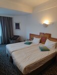 Были в отеле с 01.10 по 10.10, 3 взрослых, приехали в отель в районе 15 часов, заселили быстро, 4 этаж, с видом на город и море ( у всех номеров боковой вид на море). В целом номер(мебель и сантехника) под уставшие, но чисто. Убирались хорошо. По еде не плохо, на 4, кондитерка очень вкусная, мороженное с 16 до 17 в баре у бассейна, напитки местные. Городской отель с очень удачным расположением, с красивейшем городским парком за территорией. До моря примерно 10 минут пешком. В целом, хорошо