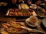 Большой ресторан с фиксированной ценой. Еда в целом хорошая, залы красивые, в одном дизайне, везде чисто. Еду принесли очень быстро, официанты работают хорошо. Из минусов: когда выступают, очень громкая музыка, собеседника рядом за столом не слышно. Второй минус — стулья просто деревянные, не очень удобно сидеть долго.