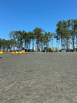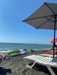 Чисто, есть бесплатный душ и туалет, бесплатная парковка. Зонты и лежаки как и везде - платные. Море мелкое, вода прогревается, песок черный))) все прекрасно)