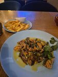 Средненько по кухне, по обслуживанию претензий нет: горячее подавалось горячим, порядок на столе. Борщ - неплох, но вместо красиво закрученных ломтиков сала - перекрученная масса жира. Второй поход был омрачен долгим ожиданием принятия заказа. Меня предупредили, что загруженность на ужине, но двери открыты. В таких случаях вешать объявление, желательно с утра, что персонал будет занят на ужин. Не жила бы в гостинице, второй раз не пришла бы.