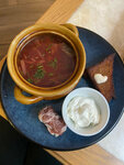 Из плюсов: хорошее обслуживание, вежливый персонал, блюда подают быстро, туалеты чистые и аккуратные. Теперь о минусах. Я ожидала, что борщ за 450 рублей будет действительно вкусным, иначе пошла бы за обычным супом в магазин, там порой попадаются даже лучше. Хотелось уверенности, что в кафе я получу домашний, насыщенный борщ, но этого не случилось. Он не был плохим, просто получился пресным и не наваристым. Немного соли спасло ситуацию. Отдельно удивила подача. На фото в меню борщ выглядел аппетитно, но в реальности немного иначе. Сам суп нормальный, сметана как сметана, а вот сало подали в виде замороженного кусочка. На вкус оно хорошее, но внешний вид хотелось бы поаккуратнее. Музыка тоже выбивалась из атмосферы, казалось, что я попала на дискотеку 2007 года. Если бы хотелось такого настроения, я бы пошла не в кафе, а в клуб. Возможно, стоит пересмотреть плейлист и выбрать что-то более уютное и спокойное. Пока ждала заказ, почувствовала неприятный запах, будто что-то прокисло. К счастью, это не касалось моего блюда. В целом место показалось неуютным, хотя, насколько понимаю, кафе работает при отеле. Но конкуренция вокруг большая, поэтому хочется пожелать вам чуть больше внимания к деталям и атмосфере. Развивайтесь, ведь вкусная еда и уют всегда привлекают гостей.