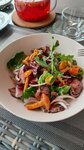 Свой День рождения решила отметить в Rterrace, решающим в выборе стал вид на Исакиевский собор. По факту вид действительно потрясающий, все столики назодятся именно на террасе, внутренних помещений нет. Кухня разнообразная на любой вкус, также ресторан участвует в гастрофестивале «Пять звезд» с 1 по 31 августа и предлагает очень необычное фестивальное меню от шеф-повара Родионова Родиона. Я не удержалась взяла именно его (если берешь весь сет: закуска, основное блюдо, десерт) действует спец цена) - мне очень понравилось, меню не раскрываю, пусть будеь сюрприз. Супруг взял борщ и картошку с грибами, на десерт неднейший чизкейк. Все очень понравилось, порции достаточные. Обслуживание на высоте, и подача, и сбор грязной посуды, обзодительность во всем и внимание к мелочам. Столиков не много, рекомендую бронировать заранее, особенно вечером. Придем еще!!!