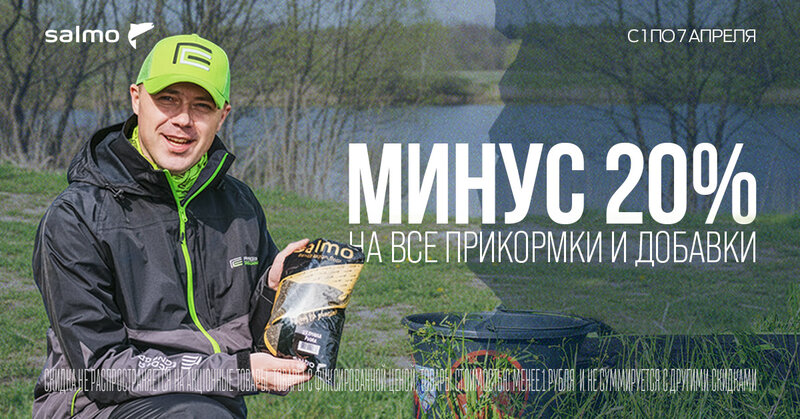 Пополняйте запасы прикормок и добавок для рыбалки с выгодой! С 1 по 7 апреля — скидка 20% на все добавки и прикормку. На все то, что заста...