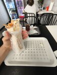 Сначала было вкусно. Но после февраля 2025 года пропала пита и с того момента всё пошло на перекосяк. Гирос горчил, есть невозможно. Фалафель безвкусный. Брали от лилии отравились. До этого злощастного времени брали там постоянно и были безума. Это было первое заведение где ты наелся, но тебе настолько вкусно что остановиться тяжело. К сожалению что-то пошло со временем не так